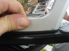 We used a wooden block to hold the rubber away and give us something to drill into. We used a small drill bit first to get the hole in the correct place, before using a large 7mm bit for the mounting holes.