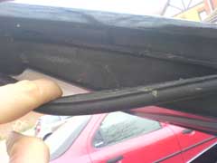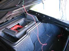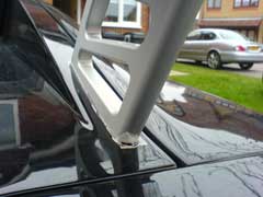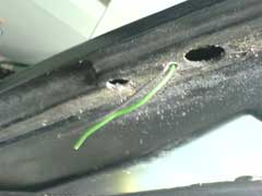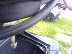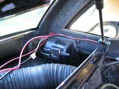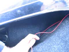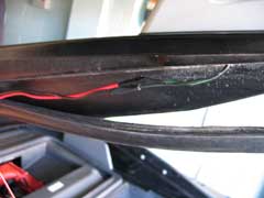 We now have our wire at the bottom of the strut and able to carry on it's way to the rear ligths. We removed the quarterlight panels to conceal the wire on it's way passed the rear wing to the back of the car. You can see our other wires for our amp that runs back to the battery. We followed them to the rear of the car.