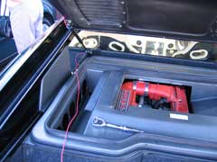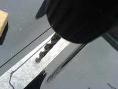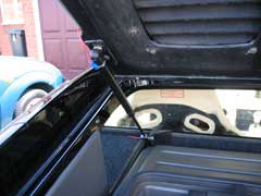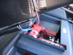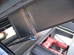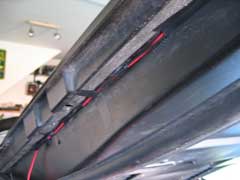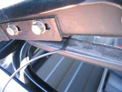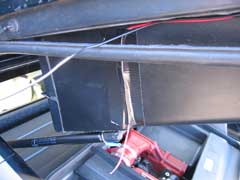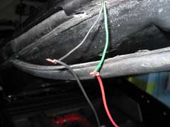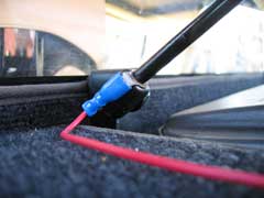 We cut the wire to length and then used an electrical connector to hook it on to the top of the tailgate strut. We the took the rest of the wire and attached another connector to one end and attached it to the tap on the bottom of the strut. The strut will carry the current and keep the connection.