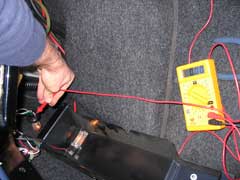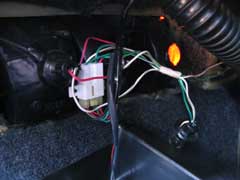 We used a scotch-block to cut into the live. These are the easiest way to cut in to another wire. Put the brake light live in one gap and the new wire in the other. Close the scotch-block and it cuts into both wires, giving you a completed circuit for both your rear brake light and your new high-level brake light. (p.s. we're not great at electrical terms)