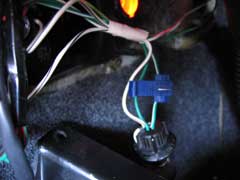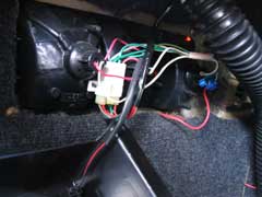 The wire comes out in the boot and can be run neatly down to the rear lights. We tucked it behind the carpet and over-flow bottle and up to the lights. There we removed the backing panel of the rear light cluster to get at the brake light. We pulled the rear brake bulb out to cut into for the live for our wing's brake light. The brake light has 3 wires. One earth (which was white) and two lives. One for the rear light and one for the brake light, as the Esprit uses the same bulb for both rear light and brake light. We used a voltmeter to see which one was which. The green was the light and the green and white was the brake light live.