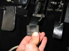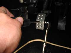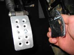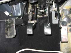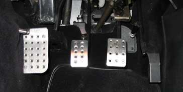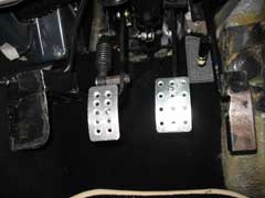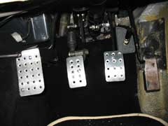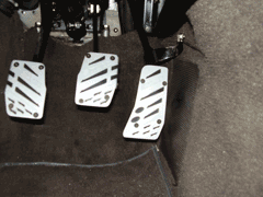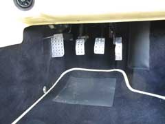 Now there is a huge variety of Alloy pedals available on the market today, mainly due to the 'Max Power' boys. Some of these sets can be bought for less than £25. LEW's has been looking around for sometime to find a set that matches the Sport 350's, but all the kits usually have a brand name on them. So in the end LEW purchased some original Lotus Sport 350 pedals from South West Lotus Centre for £49.57 (including 5% discount for Club Members and p&p). You get three pedals, a footrest, clutch and brake, as with the Sport 350. There is no pedal for the accelerator. The picture at the top of the page is one of an actual Sport 350 footwell.