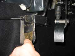Removing the old rubber was a 2 second job. The foot rest pad was glued on, but still came off really easily. This job is very simple, but is made difficult due to the restricted space. The drivers seat was removed for fitted to make life easier and removing the steering wheel would have further helped.