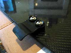Once you have removed all the fixings (remember to see other guide for removing the front fixings). We clamped the two roofs together to mark up the holes for drilling. I would recommend using some masking tape over where you're about to drill to stop any splitting that could damae the roof. We found the carbon fibre roof to be very slightly smaller in width than the glass one. This shouldn't be a problem.