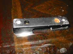 The rear fixings are easy to remove. Two Philips screws hold the handle to the mounting. Once this is remove (beware of rusted screws) you'll see two further screws. These screw into the fixing on the outer glass, one of the screws was stiff and was just turning the fixing. We used some mole grips to hold the outer fixing. Be careful when doing this as you are working with a large piece of glass.