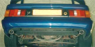 This is the system LEW runs on it's 1992 SE, the exhaust was supplied by SJ Sportscars who supply a super sport silencer with a small back-box . This Exhaust costs around £250 and will fit all 4 cylinder Cat'd Esprits.