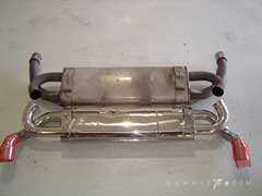 Companies like www.quicksilverexhausts.com do away with the rear silencer all together, running a pipe staight from each cat. Not expensive – at around £200. Christopher Neils also do a similar system and some owners have made their own up for only around £40, but there are issues with these systems. Firstly some owners found the mountings for the pipes weren't strong enough with the vibrations and came loose. This problem may have been sorted now, as these reports were a few years ago. You need to be aware that a large reduction in weight at the rear of the car may affect ride height/handling. Also you'll find that without any type of silencer, that they will be very noisy and you'll certainly not be able to do any track days!