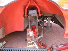 With the calliper, hub, spring and damper removed, the lower spring platform can now be accessed for modification.