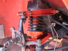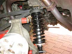 The dampers used in the conversion are from the 1985-1987 model fitted with the ventilated brake discs and are available with adjustable spring seats. The springs were custom made for this application. The photos show the old and new components side by side.