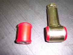 After many months of work, a specification was determined for the rear suspension top and bottom transverse links of the Esprit, to replace original bush A082D4084F. The new bushes are supplied only in a set of 8 under part number LOTAC05448, to service all four rear links. These red coloured polyurethane bushes are unique to the Lotus application and should not be confused with red bushes supplied by any other company.