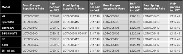 * If retaining old rear springs, order in addition modified spring lower seat LOTAC05449 (supplied singly).