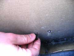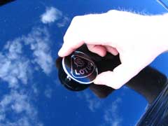 Once the nuts are off, wiggle the old badge to loosen it before pulling it out. Push the new one on and replace the nuts!