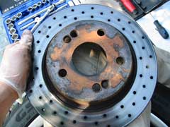 Once the screws have been removed the disc should come off. If not, a rubber mallet on the back of the disc should encourage it to remove itself. Our discs are pretty new so still look good. There's quite a difference between the old and new discs.