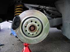 We ran ours on the axle stands to make sure everything was ok. Nice to see the discs spinning away! Put the wheels back on and test the brakes. Bedding-in instructions will come with the pads. You now have a more powerful rear brake set-up.
