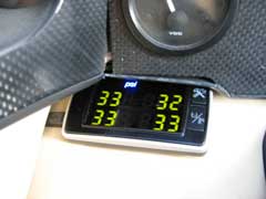 Once the wheels are all back on, we turned the ignition on and waited. Slowly, one by one readings appeared on the display in PSI. The display can be set-up to read in PSI, kPa or Bar and the temperature can be displayed in °F or °C. You can also change the display from pressure to temperature. You can set-up high and low pressure and temperature warnings (we left it on the factory presets) by using the display units set-up functions. On the temperture or pressure reaching any of the pre-sets the system will sound an alarm and the reading will turn red to inform you which tyre has a problem.