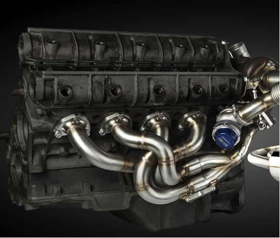 The downpipes are all equal length mandrel bent tubes which increase the pulse tuning effect greatly over the standard non equal length log cast configuration of the original unit. In addition to this flow is also maximized due to the smooth internal surfaces arranged to fit within the space available unlike the rough flaking internal bores of the original. The collector is now a CNC machined single piece for maximum durability and strength. It also offers an option for the Stevens Cars to run an external wastegate.The manifold has been proven to withstand all the temperatures and conditions produced by the Esprit due to the 321 Stainless steel properties. Even at normal driving speeds the exhaust gas temperatures are typically 750 to 850 °C and greater during track use. The manifold is lighter than the original cast unit weighing only 6 Kg. All these attributes produce a durable high quality product with proven gains in both power, torque and turbo lag reduction.