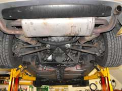 The Exhaust and then Cats are removed. Your local Lotus Specialist will have an easier time due to having a lift!
