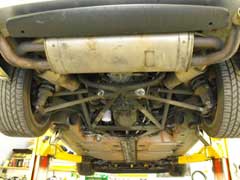Some closes ups of the state of the exhaust system. 10 years of heat and water normally makes things a little brown. The Esprit suffers more in the exhaust system as it's so close to the engine, which increase the heat build up. Also the piping not running the length of the car, as in front engine cars, decrease cooling.