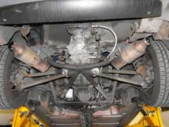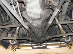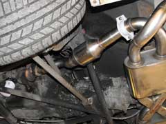 You can see above the cats connected to the turbos. Also the new mounts to hold the system on.