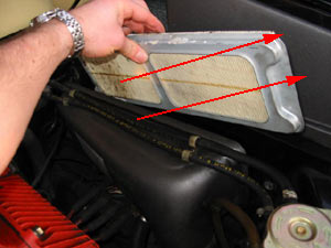 Pull back the box carefully and you'll see the Air filter. Remove the old filter from the box. You can see from the picture on the right that there's plenty of space without troubling any of the pipes.