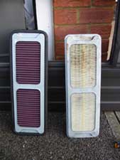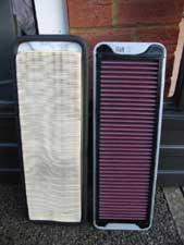 Due to legal problems with the metal frame on the K&N we've used above, they are no longer available (note, these are now available from Esprit Engineering May 2011). What is available is a K&N one without the metal frame, which isn't easy to fit, or a Green Cotton Filter, which fits. Alan Paterson has worked out a way of fitting the K&N filter to an Esprit.