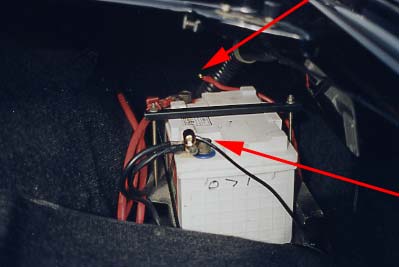 I ran both the power and earth cable from the battery as the Esprit has a problem earthing as the bodywork isn't made of steel. The cables run along the back of the boot and up towards the left hand side of the engine.