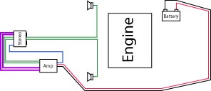 *Remember to disconnect the battery while working on the cars electric's* With the Amp under the passengers seat, the cabling is as follows;