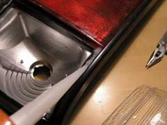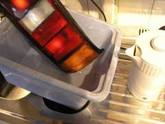 1. First remove the rear light clusters. 2. Then you need a bucket large enough to dip the clusters in, and a kettle to boil some water. Heat up some water, (dont boil it you will only risk damaging the light clusters and burning your self) and pour it into the bucket, then place the light cluster into the hot water and let it sit in the water for a few minutes. This will make the glue used to mount the amber indicator lens soft.