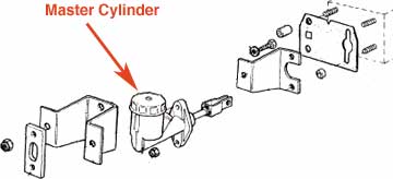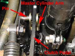 Works great ! Split the bracket then weld drill set collers to each half then used a .375" dia. pin to link it up. To take off remove pin take out one retaining bolt on brake bracket and two bolts on clutch master cylinder. I took Colin's advise and installed my new one from the top by leaving the existing retainer spring pin on the plunger. These help forums are a great tool.