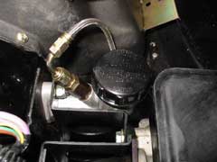 First thing to do is remove the clutch hose. Do this carefully as it will have plenty of clutch fluid in it if you didn't flush the system when fitting the slave. The Master is attach via two 13mm bolts, it is also held in via a metal plate that attaches to the brake servo. The plate needs loosening to release the master cylinder. A 15mm bolt holds the plate in position.