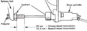 As you can see from above the Slave Cylinder bar needs to be set at a certain length. 22mm for Citroen gearbox's (pre 1987) and 12.5mm for Renault (post 1987). As I was using the old arm, I didn't need to change this. But do check while the bar is out.