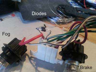 IMPORTANT! Make sure you place the diode so the current flows in the right direction, otherwise you will lose brake lights when fog lights are lit.