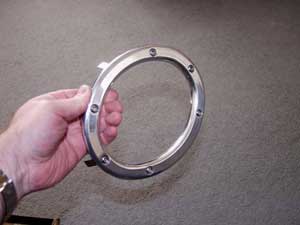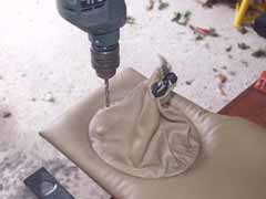 Left: Lay the alloy surround on top of the gaiter ring and mark the positions of the holes with a felt tip pen. Right: Drill out the holes using a 6mm drill bit, then lay the alloy surround on top and push the screws down through the holes.