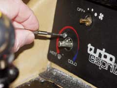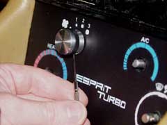 The new Esprit Heater control controls have been designed to fit the 8892 MY Stevens Esprit, although they may well fit the S3 Turbo as they share the same heater control panel. Lotus saw fit to carry over the Guigiaro heater panel, even though it still used the wrong (lower case) typeface to the Stephens cars in 88-92.