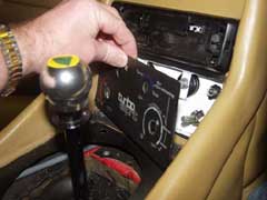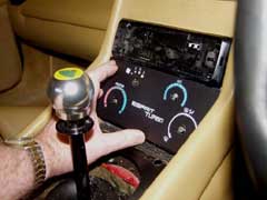 Remove the centre console as described in the Gearshift Surround install guide, then if you have a HiFi system with removable front panel, take this off to avoid scratches. Throughout this install be careful not to scratch or scuff the leather on the panel either side of the heater controls. Old leather is not easy to match if you need to replace it.