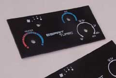 The new style heater control panel was designed to fit the 88-92 MY cars, to replace the original with more modern graphics and a colour scheme more befitting a contemporary luxury sports car. Furthermore the backlight colour has been updated to a pale blue shade as used in cars of recent years. Two types of control panel are available, one for the Turbo with AirCon and one for the N/A car without A/C