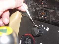 You will then see 2 small screws in the face of the heater panel. Unscrew these, then carefully prise the panel away from its mounting. It will be held in place by a spongy kind of material. Whilst removing the panel, great care should be taken not to damage the leather of the surrounding console.