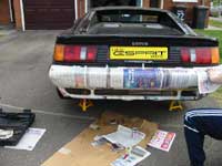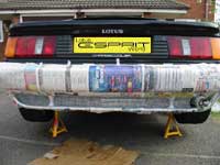 The most important thing when spraying anything, is the masking of the area. This should take as long as is needed to cover all areas that aren't in need of new paint. It took two people about an hour to mask the rear and sides of my Esprit (although there was a lot of sitting back and admiring our work!). So don't rush this!