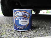 Then I decide maybe I could paint it will some metal paint in a spray can. On a quick trip to a DIY store, I found some hammerite spray (silver or black), which is the same stuff I used to protected my headlights. I chose silver with the proviso that if it look bad I could paint it black later. I also bought some masking tape and a wire brush (in a sponge!). With a little bit of experience in painting my front spoiler, I was happy I would at least not screw up big time.