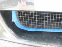 I decided to give the front mesh a coat of the same paint by hand. I bought exactly the same paint in a can instead of in a spray. Masked up the paintwork, and used a small brush to give the mesh two coats.