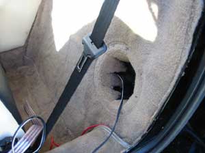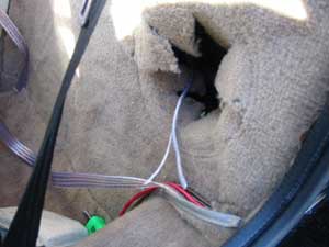 I re-routed the speaker wire under the carpet and up the door seal. Then along the trim under the rear window and down the opposite door seal and again under the carpet. To get the wire into the hole I drilled as small whole to feed the wire into the pod.