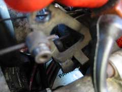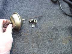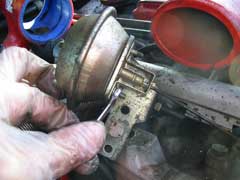 Using a small spanner you can remove the nuts and remove the capsule from the mounting. You can then replace the mounting, as the chargecooler will need it. The picture above right shows the capsule and it's fixings.