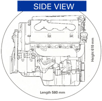 The turbocharged engine is designed to achieve a minimum weight (less than 214kg (dry), including all ancillaries and wiring loom) and to fit within a package size of 580mm (l) x 710mm (b) x 610mm (h).