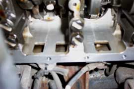Following removal of the oil pan no sign of coolant leaks (staining in the