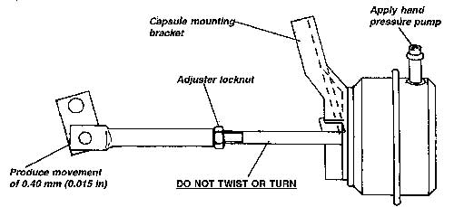 Specification = 0.58 + 0.02 bar (8.6 rt 0.25 Ib/sq.in)If the pressure is below specification, the actuator rod should be shortened, and if above specification, lengthened.