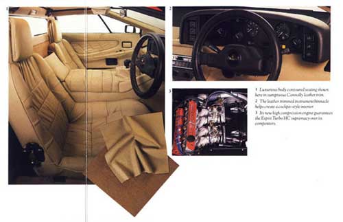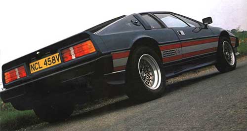 The engine used for the Esprit Essex was the turbocharged dry sump Type 910 which delivered 210 hp @ 6,250 rpm with torque of 200 lb/ft @ 4,500 rpm: this was significantly more power to the rear wheels and much more mid-range flexibility. This was a car that delivered a top speed of 150 mph (241 km/hr) and standing to 60 mph in just 6.1 seconds. In short this was a car that looked, felt and sounded like a high performance exotic.