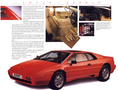 During this period up to 1990 Lotus also offered a more affordable version of the Esprit Turbo fitted with a less powerful 228 hp version of the 910S engine and with less luxurious fittings. This car was called the Esprit S with the “S” standing for “Sports”.