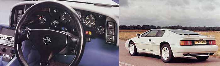 Externally, Lotus had done some aerodynamic fine-tuning with a small bib on the front spoiler and two different boot lid-mounted spoilers one for the SE and one for the standard cars. It was the first work that Peter Stevens had done for Lotus, though it wouldnt be the last Inside there was a new wraparound fascia, slimmer headrests, new heating and ventilating system, a tilt-adjustable steering column, central-locking, a new wiring system and a revised headlamp lift mechanism.