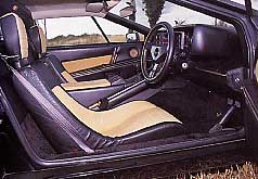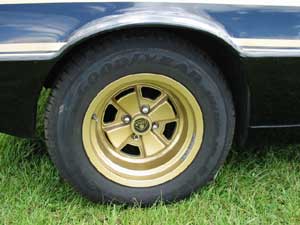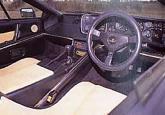 Limited edition detailss included finishing the standard Lotus alloy-wheel design in gold. Another detail was to frame the bonnet badge with a wreath that reflected the success of the World Championship winning type 79 Grand Prix cars. The gold theme extended even to framing the windscreen of the special edition S2 Eprit and the use of gold for side stripes. Interior effect of the golden cloth upon the generally overcast interior of the first limited edition Esprit. The most practical addtion was the sports three-spoke steering-wheel in place of the standard plastic one.
