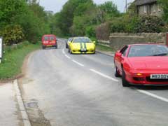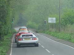 A spirited drive back to the Melting Pot Public House saw the group fragmented into many small groups. Above right, Rob E takes the racing line a little too far!